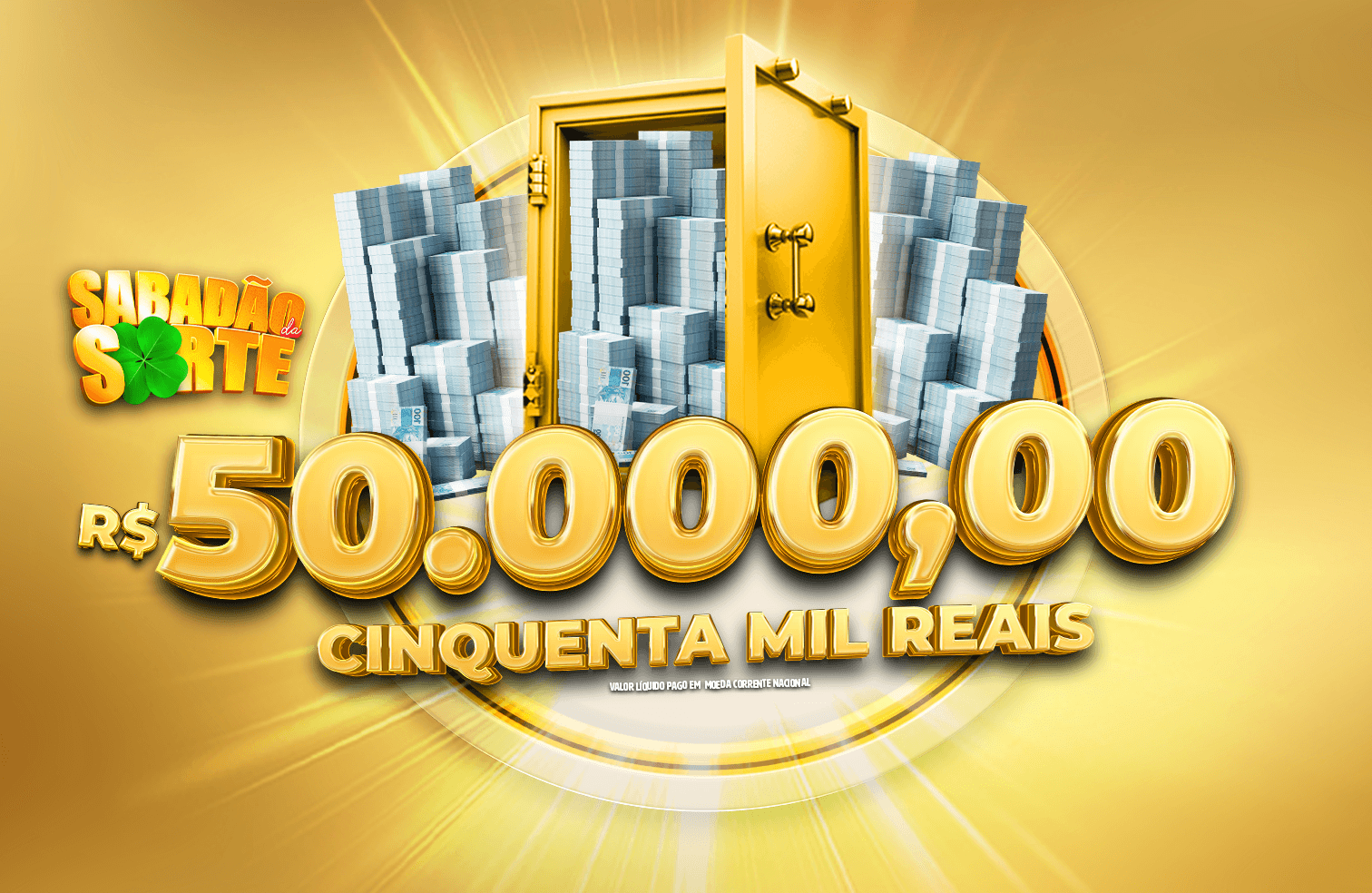 No Sabadão da Sorte, você concorre ao prêmio principal de R$50.000,00 e ainda R$10.000,00 pra quem ficar pra quem ficar Na Trave. Participe agora!