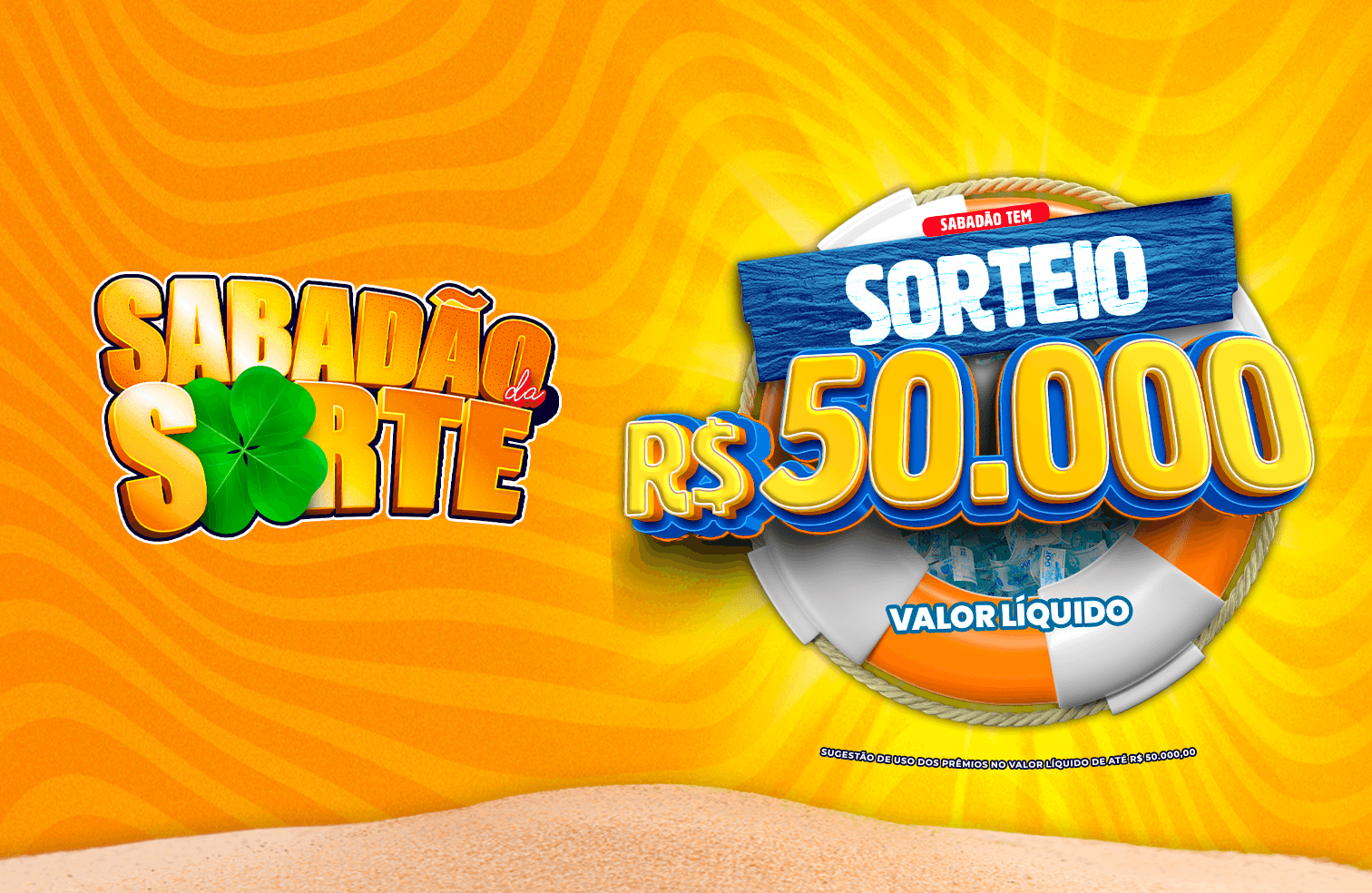 No Sabadão da Sorte você pode levar R$50.000,00 no prêmio principal.